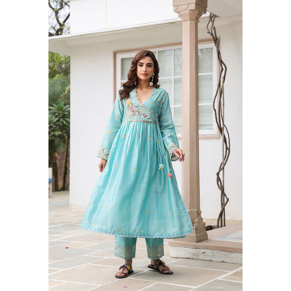 Label Niti Bothra Blue Gulzar Frock Style Embroidered Kurta and Pant (Set of 2)