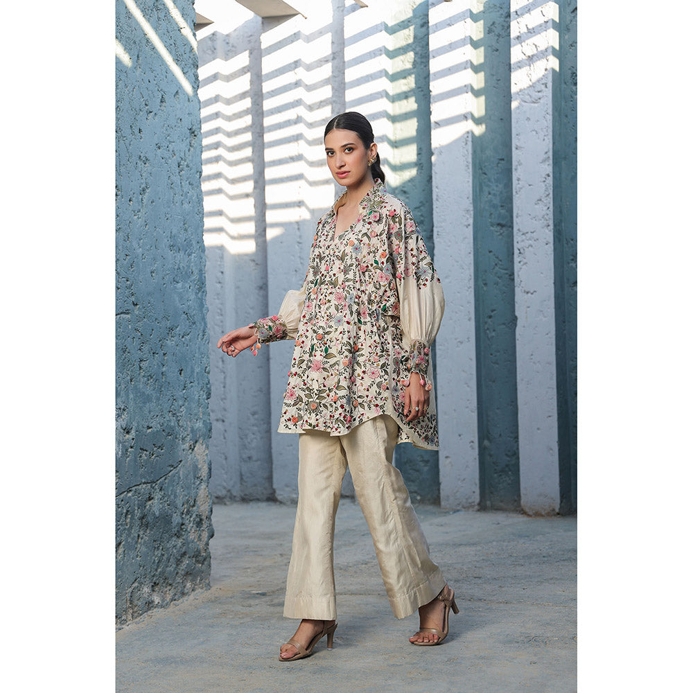 Description : This 2Pc Co-Ord Set Comes With A Heavily Multi-Coloured Thread work Embroidered Top. This Oversized Top Is Paired With Plain Broad Pants