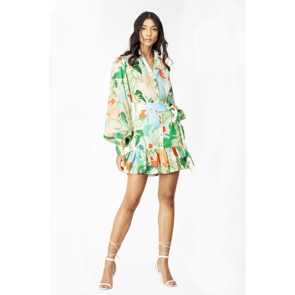 MANDIRA WIRK Cotton Lurex Printed Shirt Dress & Belt Green (Set of 2)
