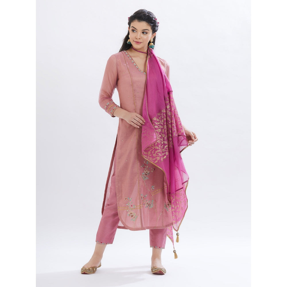 Old Rose Kurta With Pant And Dupatta (Set Of 3)