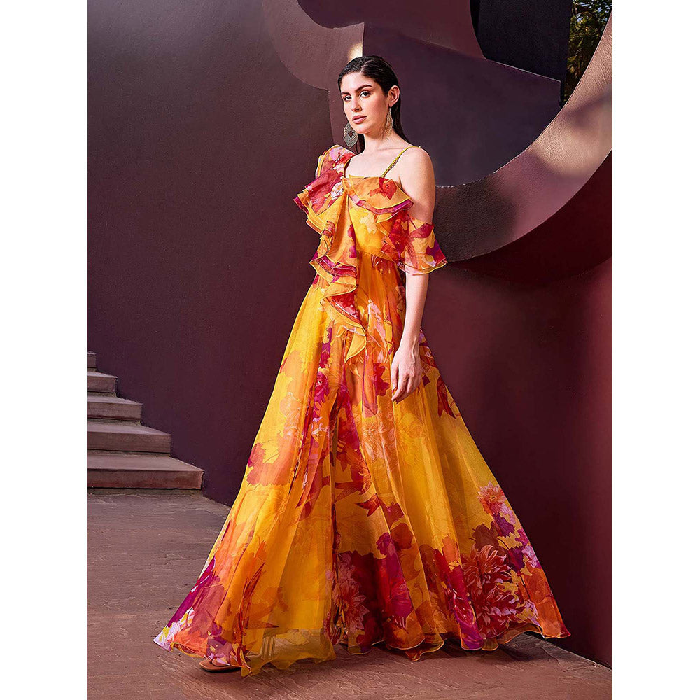 MANDIRA WIRK Sunset Radiance Floral Maxi Dress
