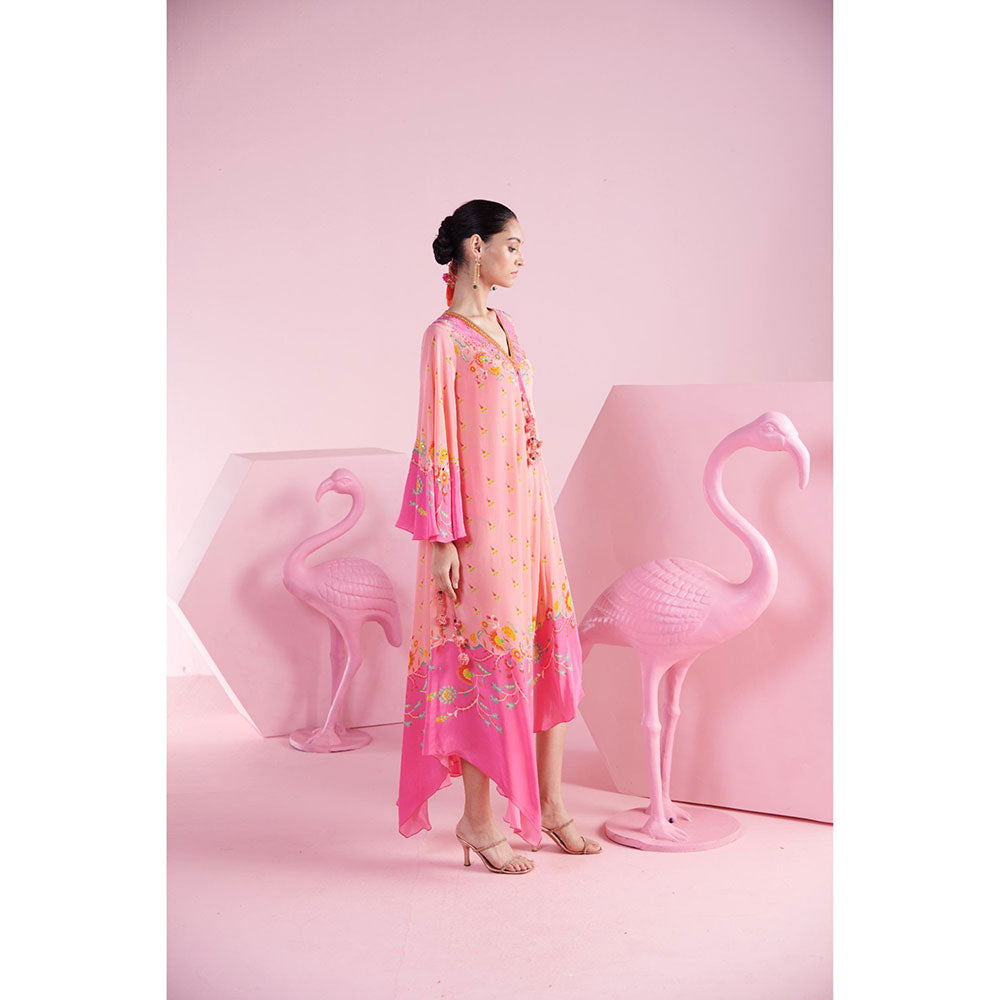 Description : Adorn the ethnic bliss with this pink dress from MANDIRA WIRK. Made from high quality crepe, it features pull on closure and embellished/sequined pattern along with flared sleeves & v-neck design. Pair it with wedges or heels and some jewellery to complete your ensemble.
