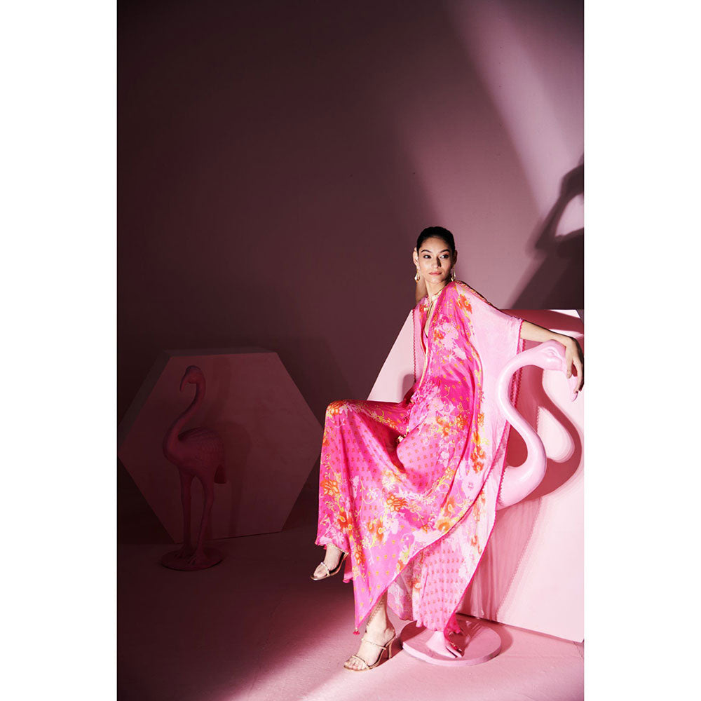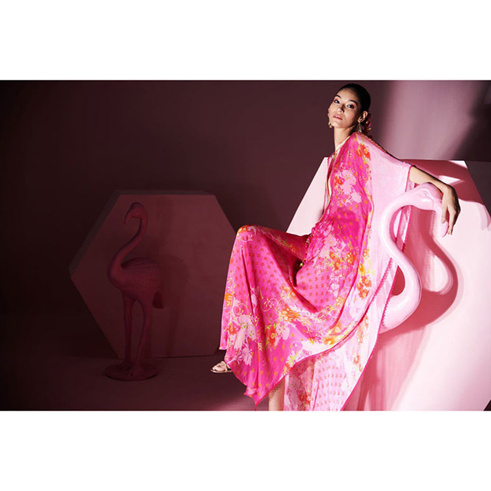 Description : Adorn the ethnic bliss with this pink Co-ord Set from MANDIRA WIRK. Made from high quality chiffon, it features pull on closure and printed pattern along with flared sleeves & mandarin neck design. Pair it with wedges or heels and some jewellery to complete your ensemble.