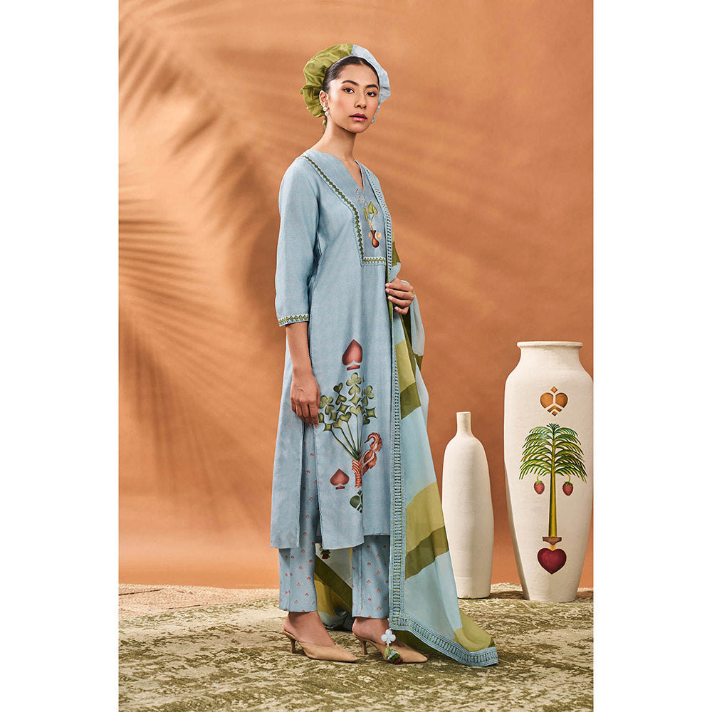 Masaba Powder Blue Spades Kurta with Pant and Dupatta (Set of 3)