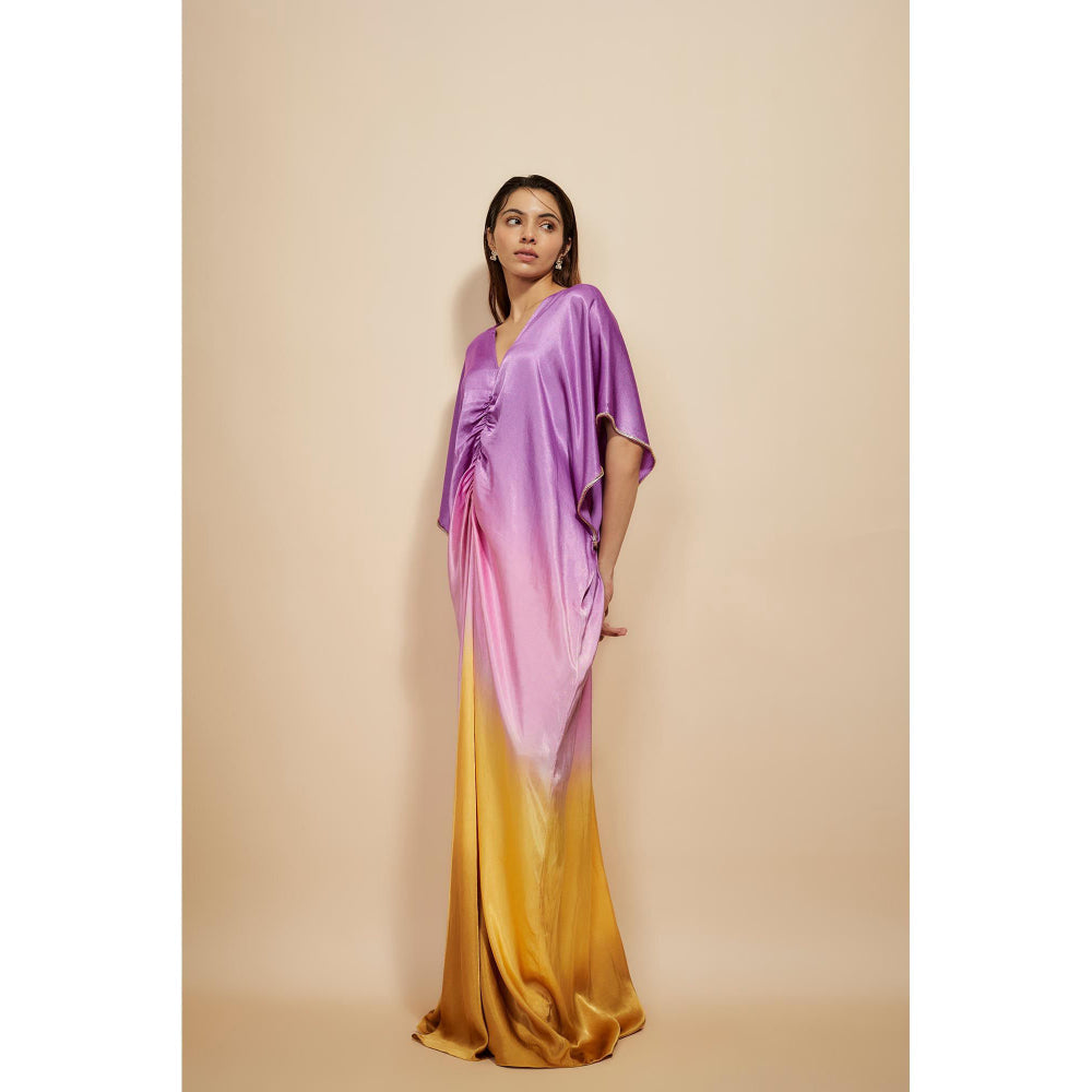 Masumi Mewawalla Lavender Ombre Embroidered Kaftan Dress