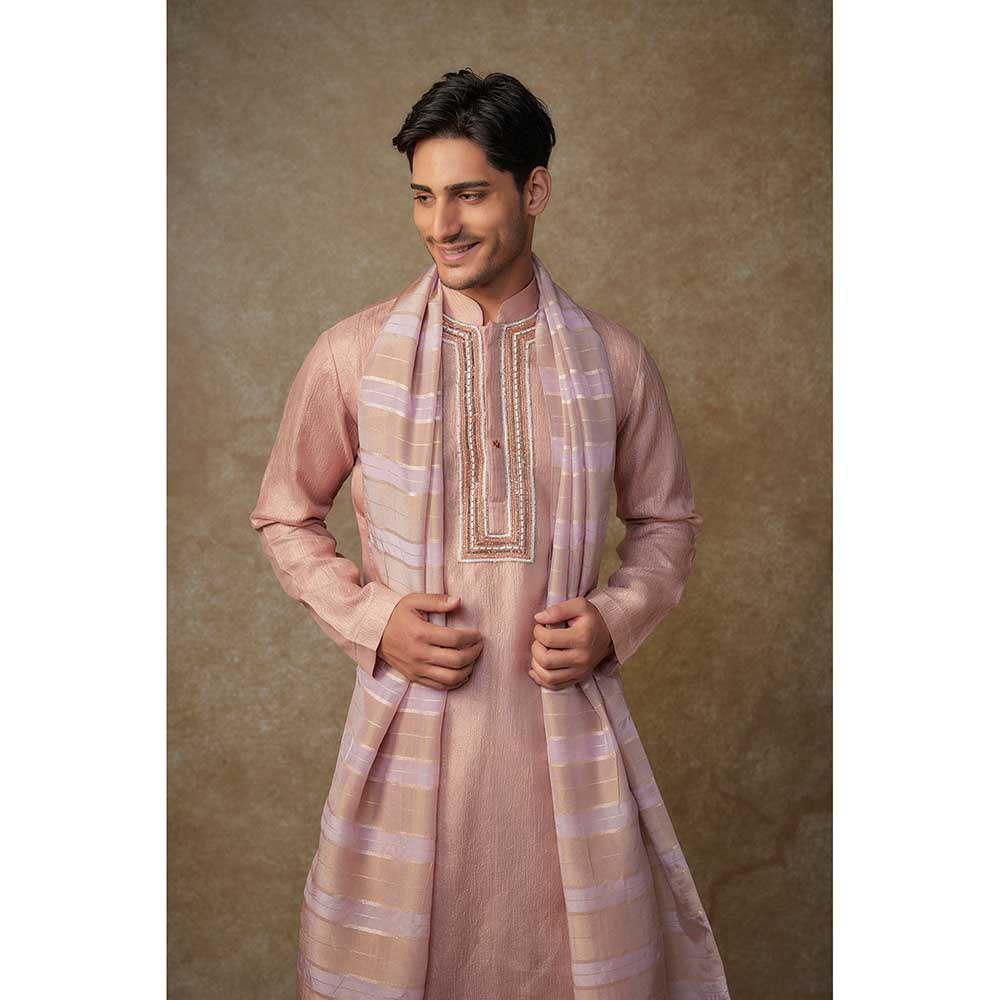Description : Adorn The Ethnic Grace With This Pink Kurta Set From Masumi Mewawalla. Made From High Quality Viscose, It Features Front Closure Closure And Embroidered Pattern Along With Mandarin Neck & Slit Pocket Design. Pair It With Festive Jewellery And Wedges To Complete Your Ensemble.