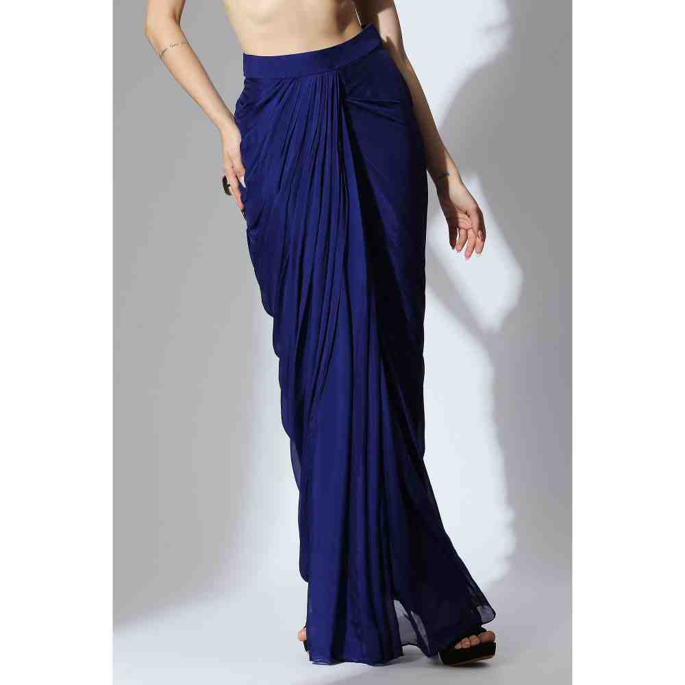 Description : Featuring Royal Blue Embellished Shirt in Gajji Silk with Draped Skirt in Tabbi Silk
