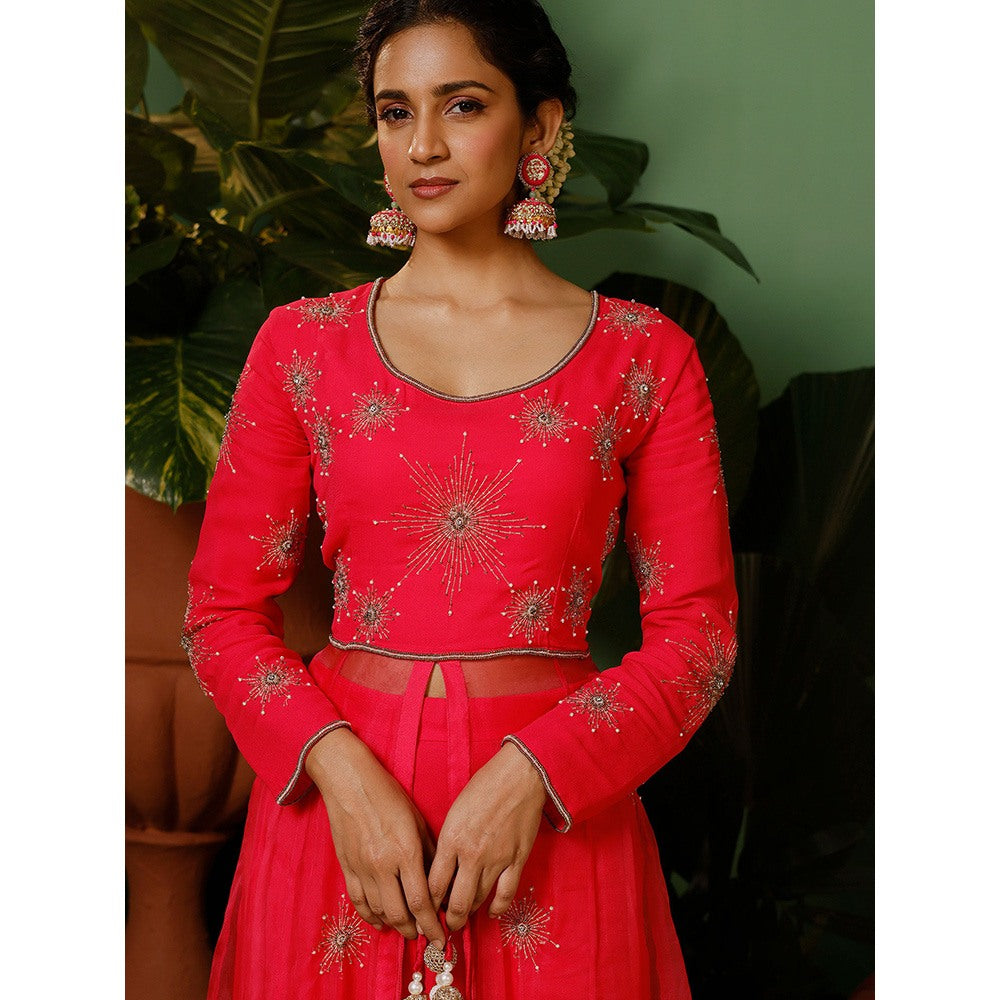 Midushi Bajoria Pink Kalidaar Kurta with Palazzo In Georgette Kalis In Organza (Set of 2)