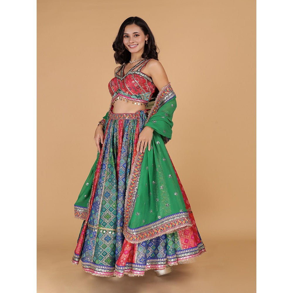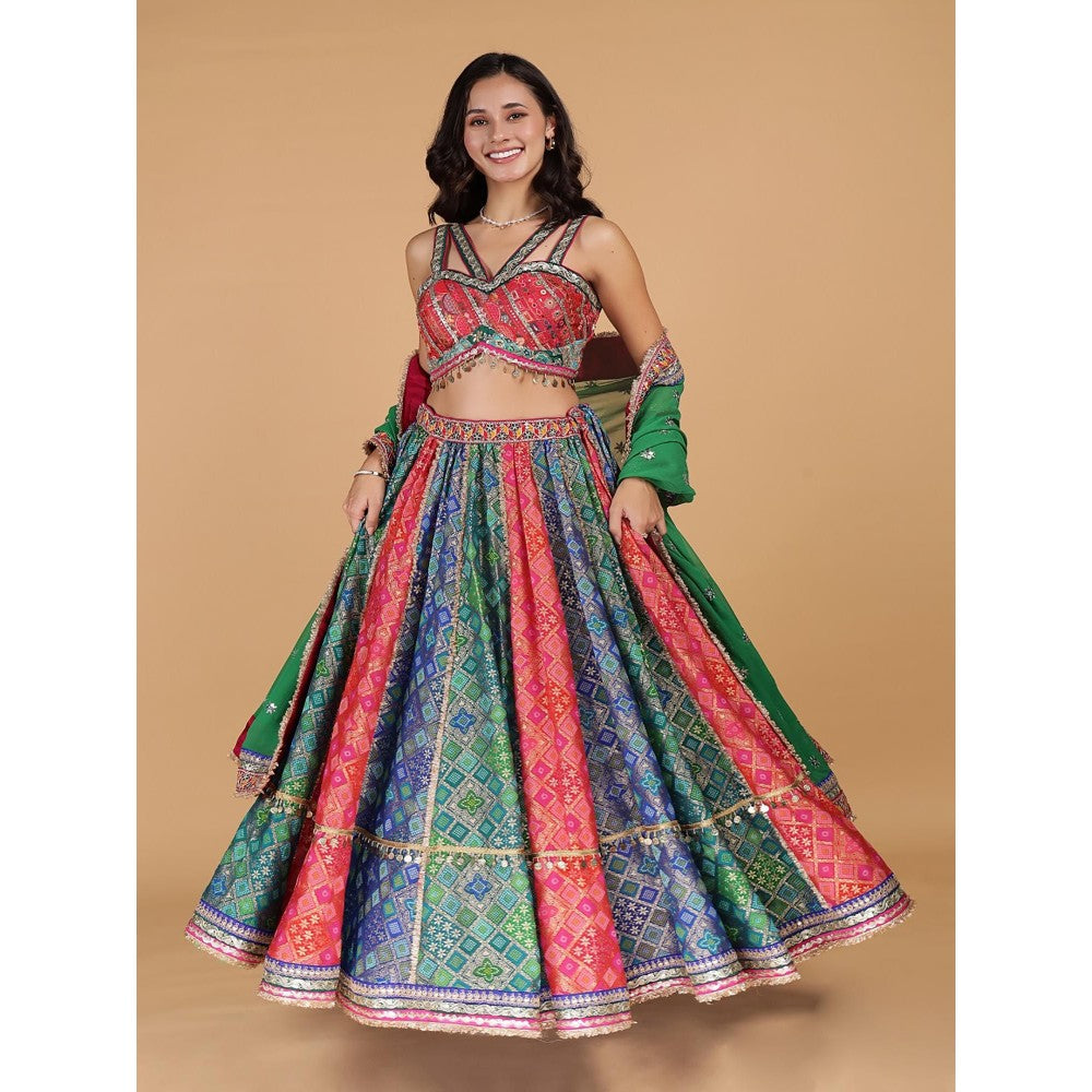 MILU MADAN Multi-Colour Georgette Brocade Lehenga with Blouse and Dupatta