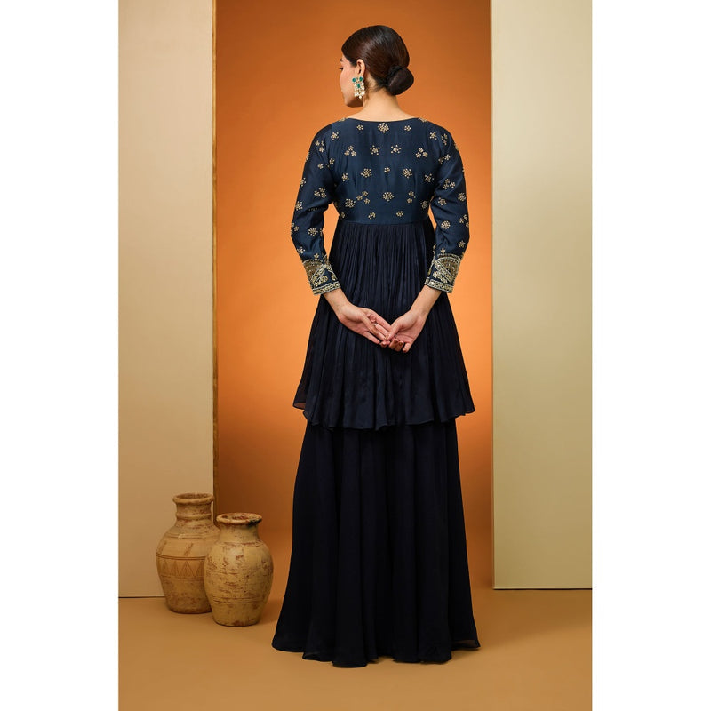 Neha Khullar Navy Blue Kurta with Palazzo and Dupatta (Set of 3)