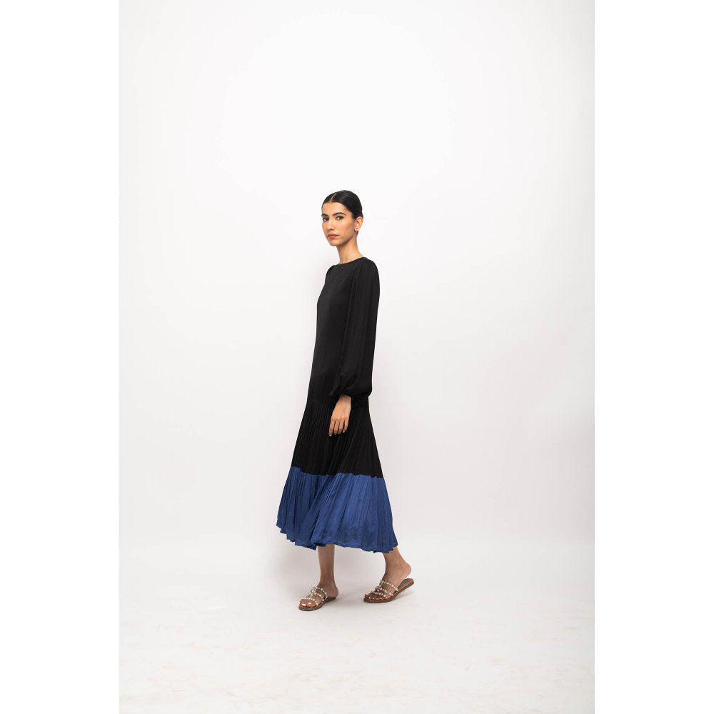 NEORA BY NEHAL CHOPRA Black & Navy Blue Gather Maxi Dress