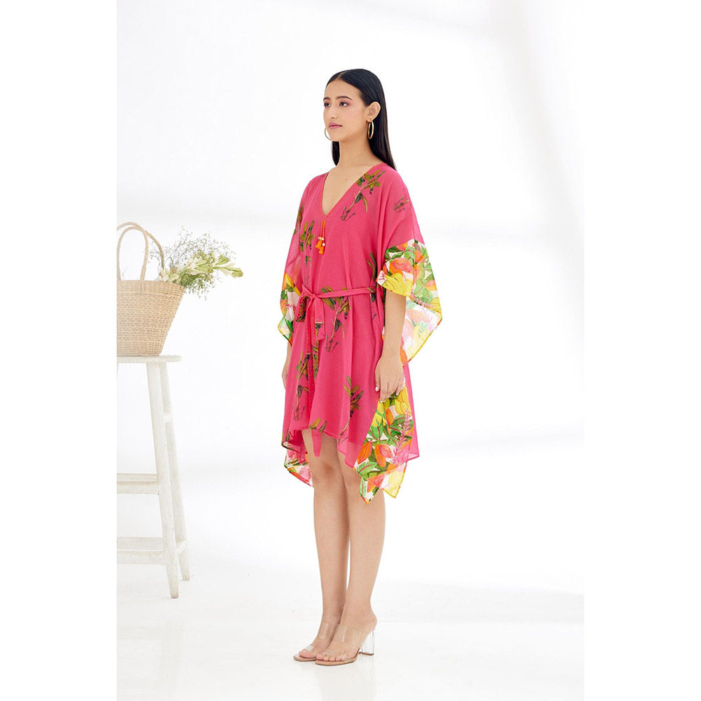 Nikasha Fuchsia Hand Painted Banana Tree Print Mini Dress with Belt (Set of 2)