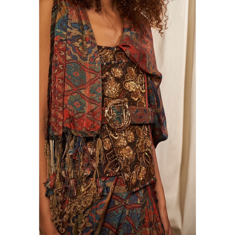 Description : Pump up your style quotient with this saree from Nikita Mhaisalkar. It is made of high-quality fabric. It assures a soft and soothing touch against the skin. The printed pattern makes it a captivating choice. It comes with an unstitched blouse piece.