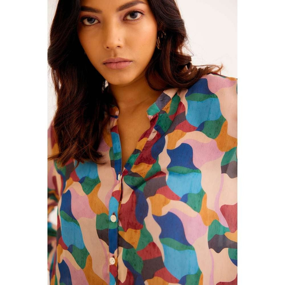 Description : Satin Georgette Blend ABSTRACT Day Shirt. Tailored to sartorial perfection from premium quality fabric, it assures a soft and soothing touch against the skin. The exquisite silhouette adds to its appeal.