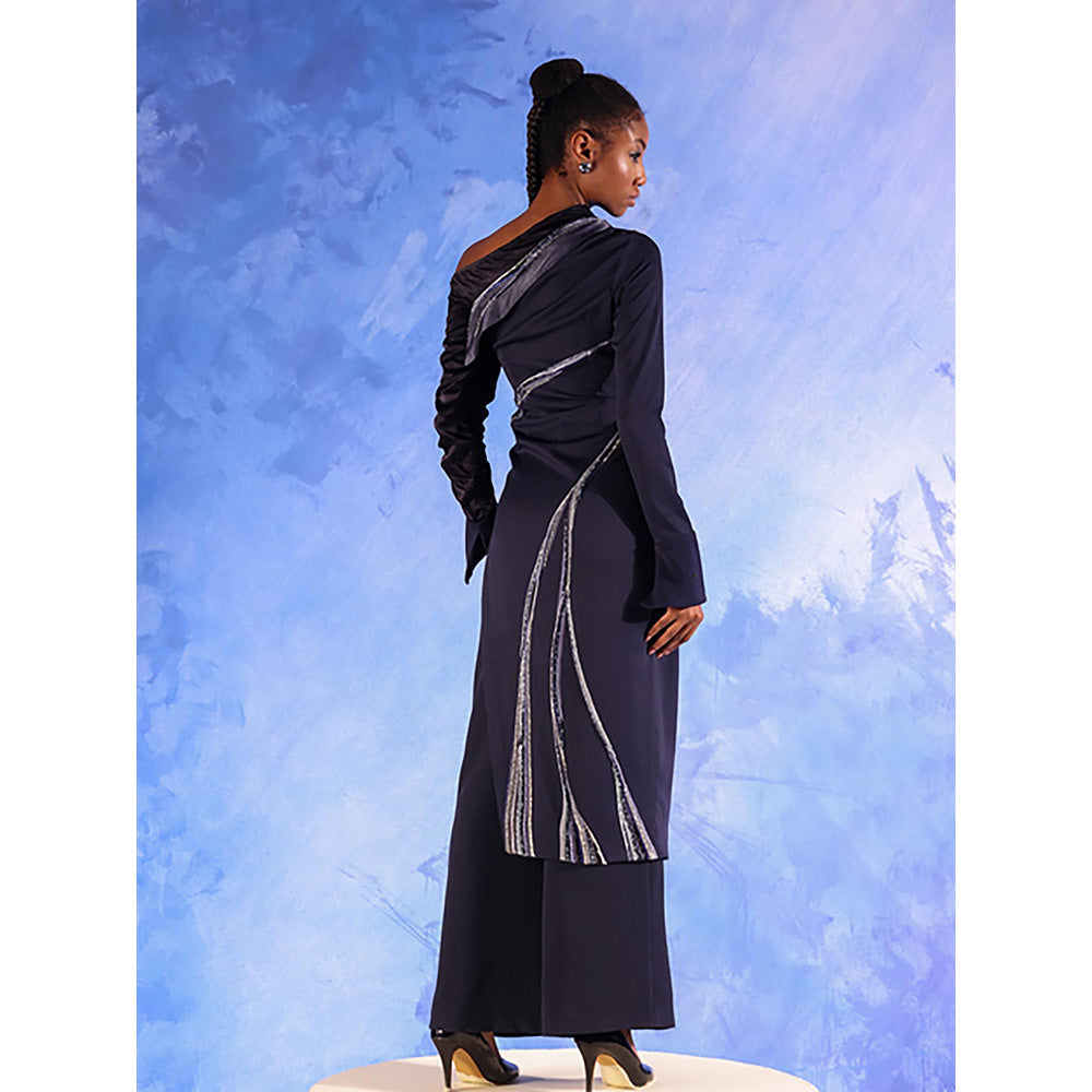 Orthodox Exalt Drape Navy Blue Crepe Dress