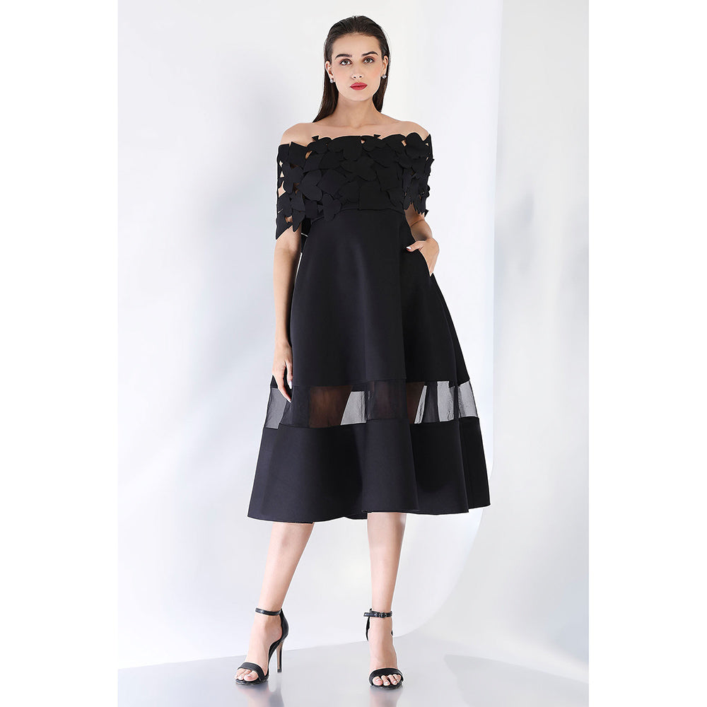 Description : This Strapless Fit-And-Flare Midi Dress Is Beautifully Designed with Sheer Organza Panels That Add A Light, Delicate Touch To The Structured Silhouette. Paired with An Ace Cutout Wrap, Which Can Be Styled One-Shoulder or Off-Shoulder, This Ensemble Offers A Bold Yet Elegant Approach To Formal Dressing, Perfect for A Standout Look.