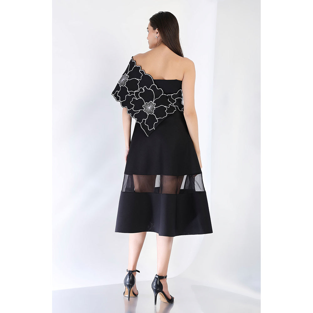 Ozeqo Black Fit and Flare Embroidered Dress and Wrap