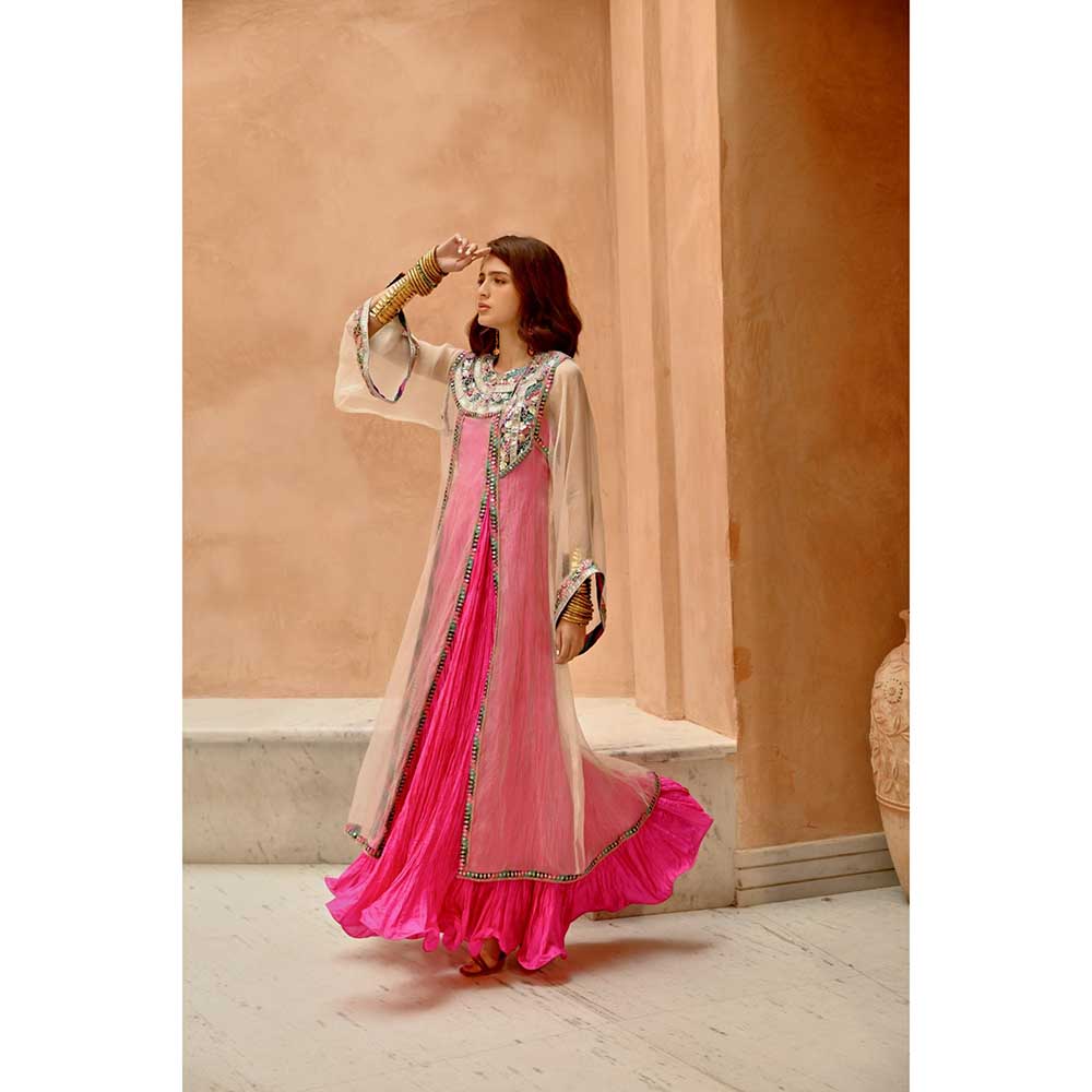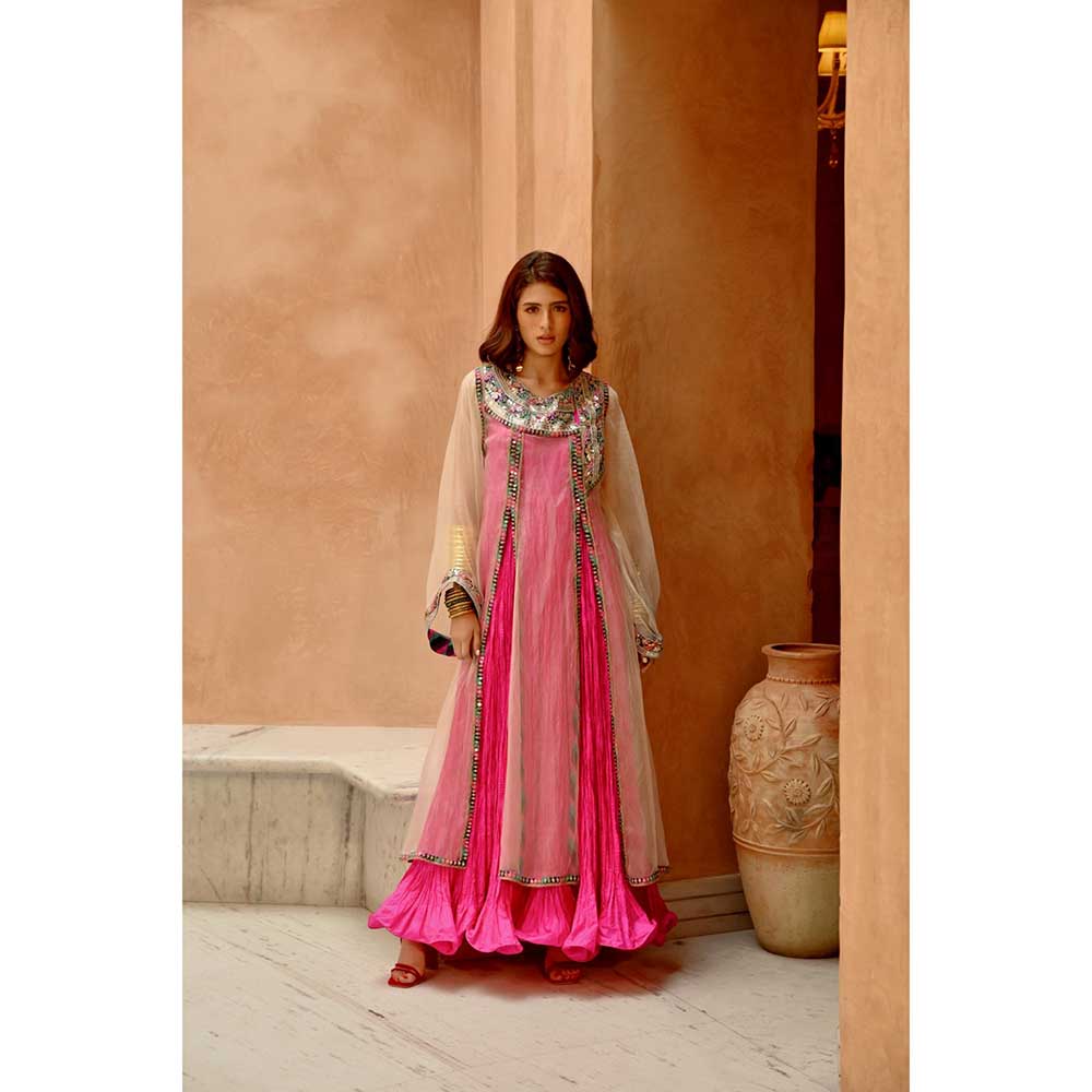 Description : Flaunt your grace with this ivory sequined anarkali from Pallavi Jaipur. Made from high-quality silk, the anarkali kurta features flared sleeves and a round neck. It is paired with a fancy pant. Style it with minimal jewellery and sandals to complete the ensemble.