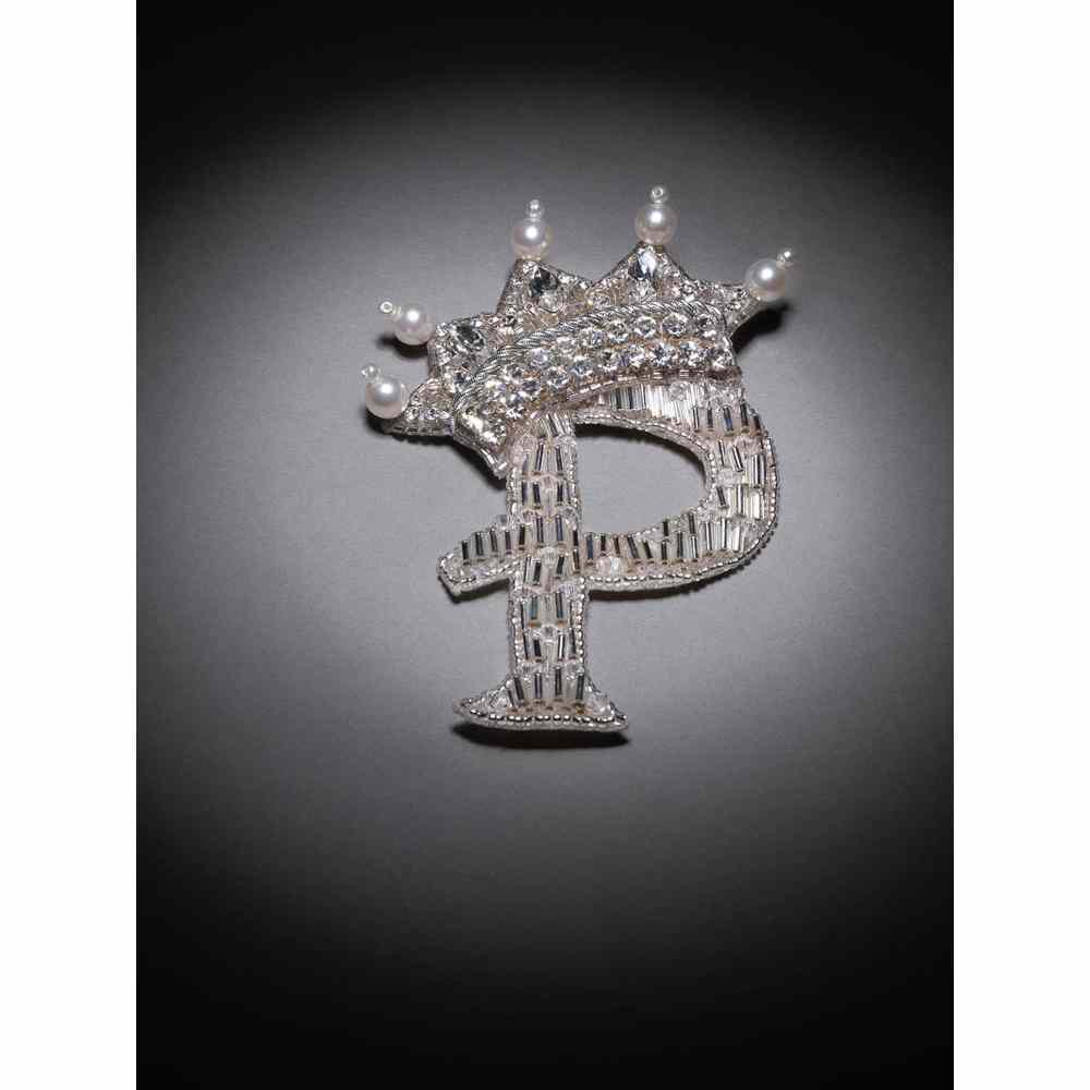Navy Shirt Dress With Silver Monogram With Crown Brooch