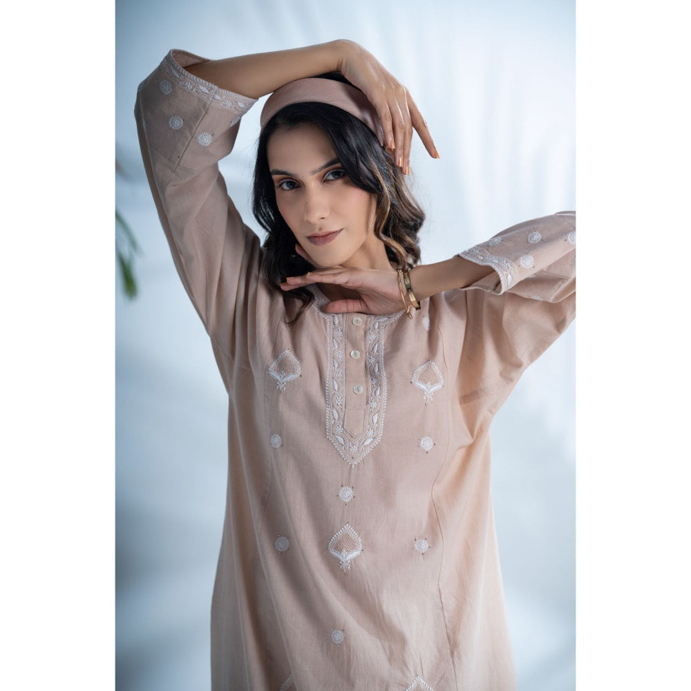 Hazel Beige Chikankari in Cotton Kurta and Cotton Bottom (Set of 2)