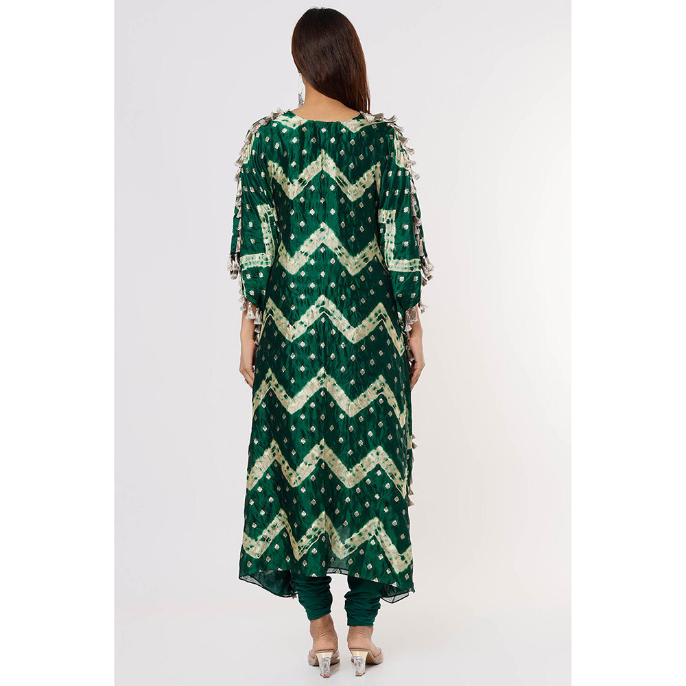 Payal Singhal Green Leheriya Embroidered Kaftan with Churidar (Set of 2)