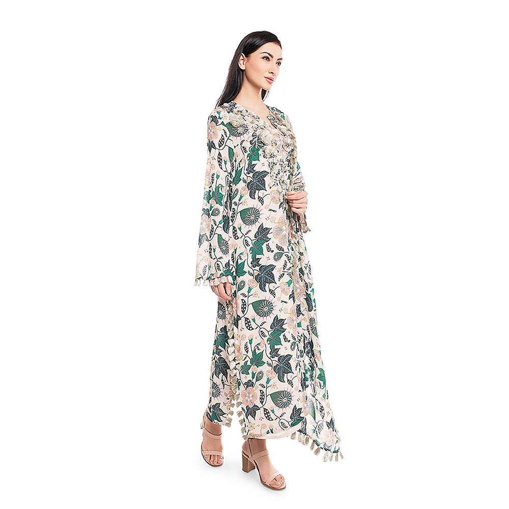 White Printed Georgette Kurat with Churidar & Dupatta (Set of 3)