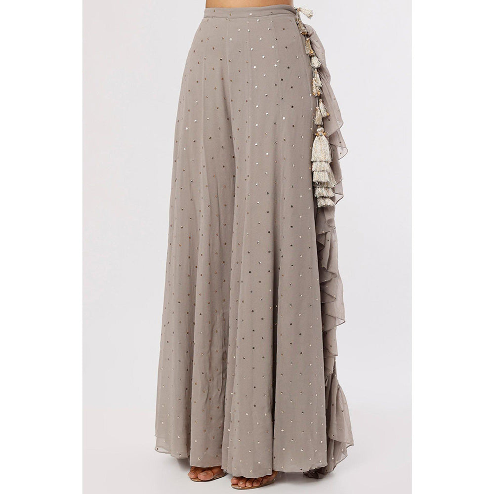 PS Pret by Payal Singhal Grey Embroidered Choli And Frill Sharara (Set of 2)