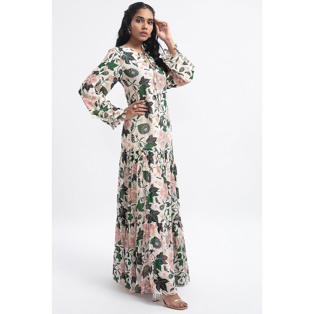 PS Pret by Payal Singhal White Colour Printed Art Georgette Tiered Dress
