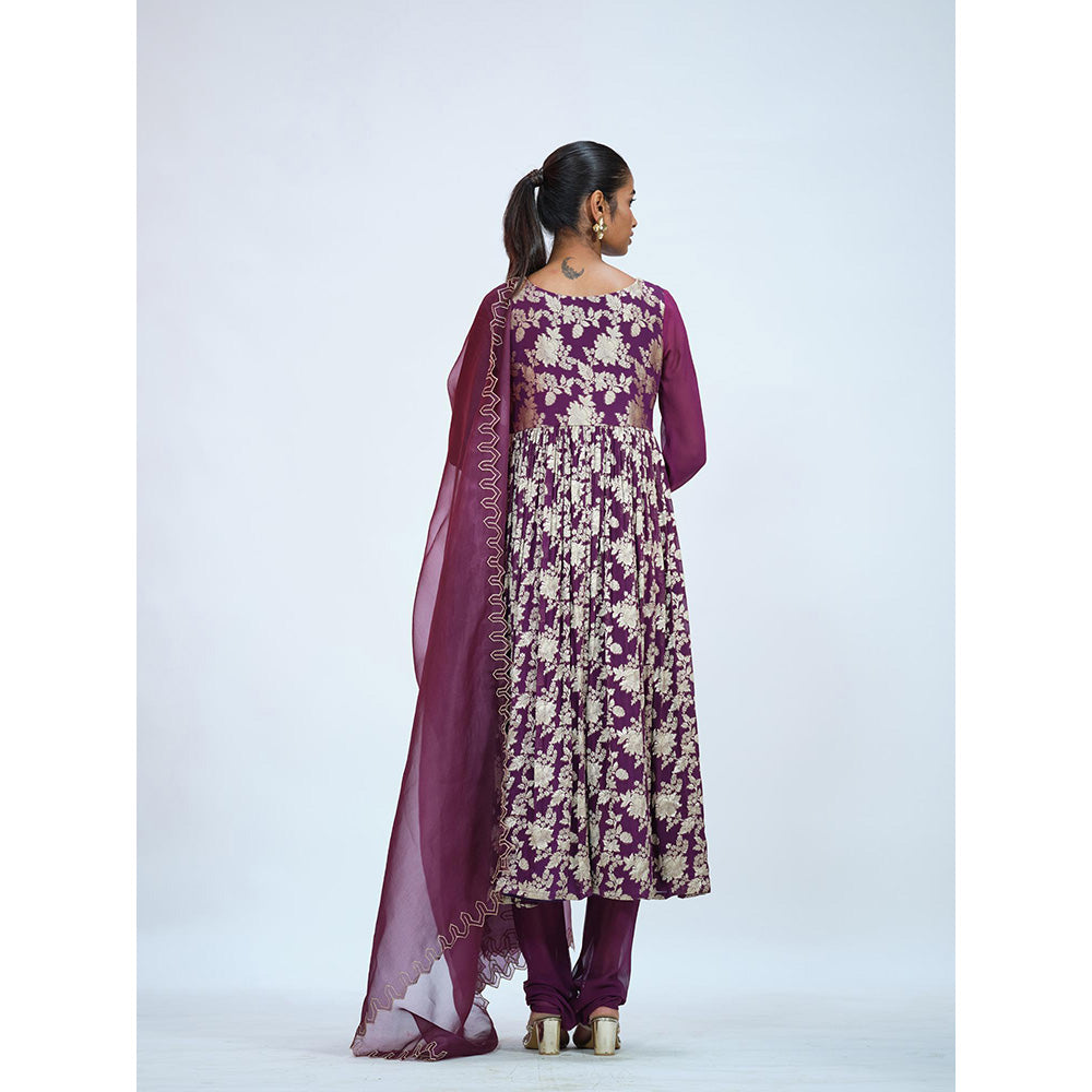 RAAG SUTRA Beetroot Georgette Brocade Anarkali Kurta with Pant and Dupatta (Set of 3)
