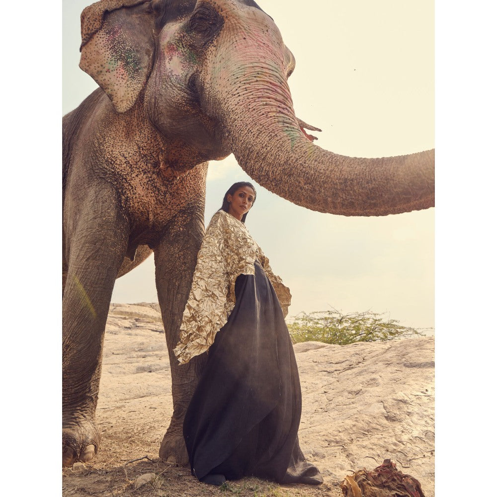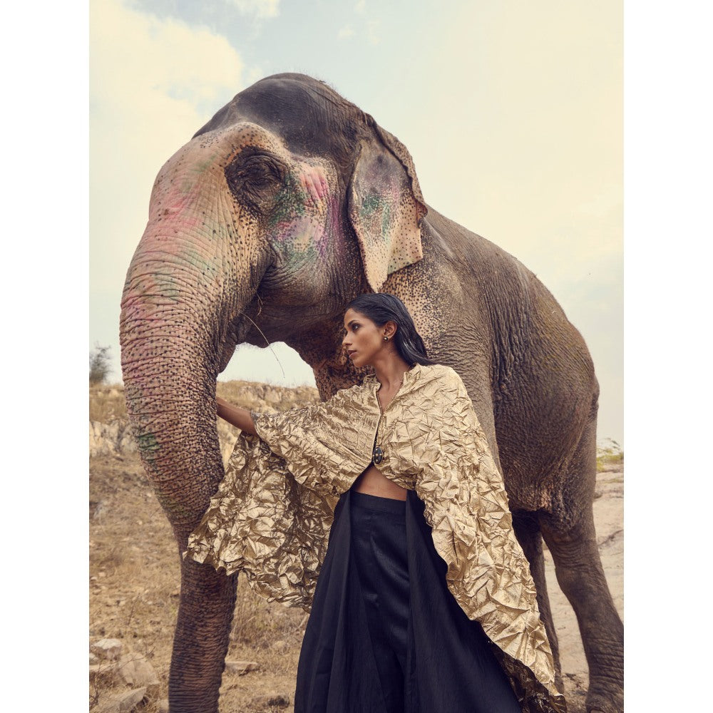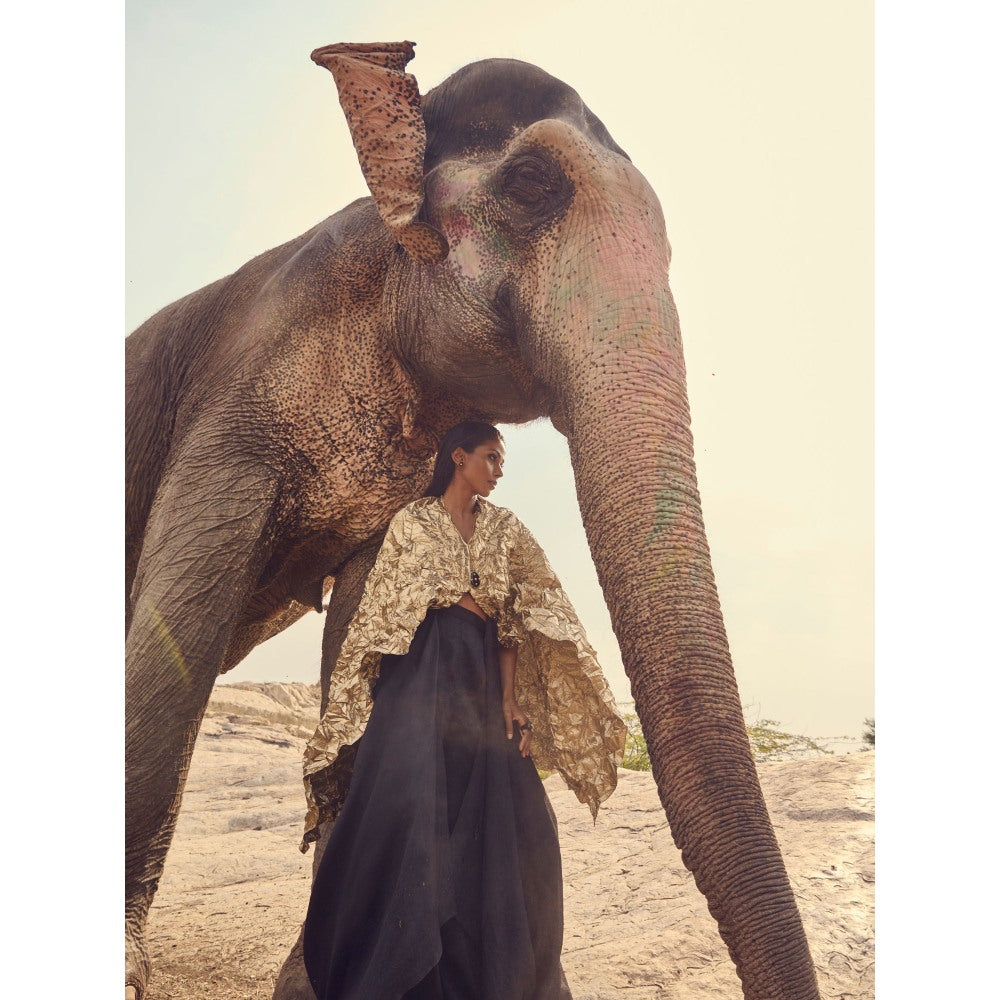 Description : Experience comfort in style with this gold top from RENASCI. Made from high-quality cotton. It features cape, a pattern. Style it with minimal jewellery ad sadals to complete the ensemble.