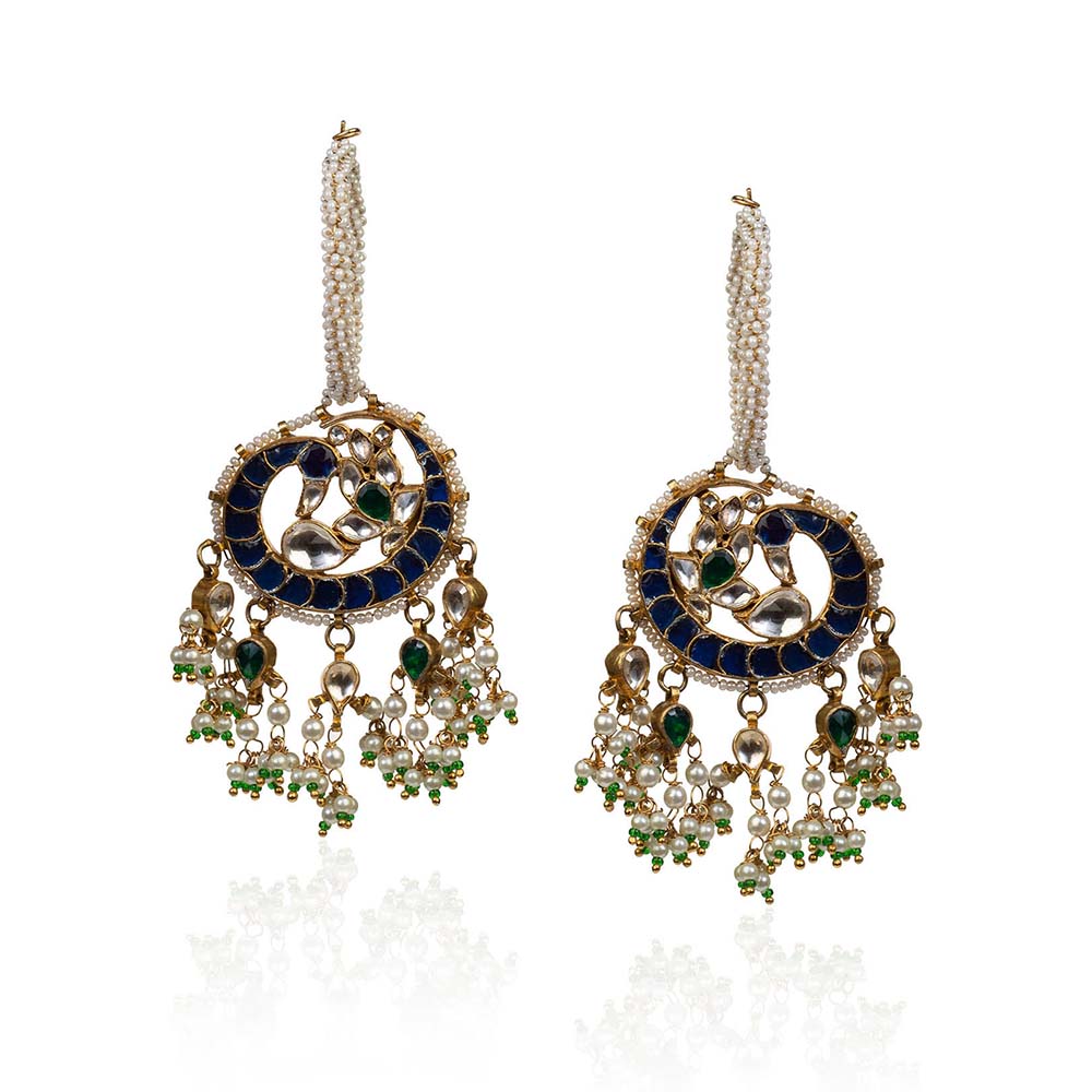 Description : This peacock blue and green two-piece earring from Riana Jewellery is perfect for your upcoming traditional event, be it a shaadi or a haldi. Add the much-needed bling in your life with this piece that is crafted with exquisite intricate detailing to suit your personality and compliment any outfit of yours. Let your outer self be as beautiful as your inner self with this statement piece and dazzle as you deserve to!