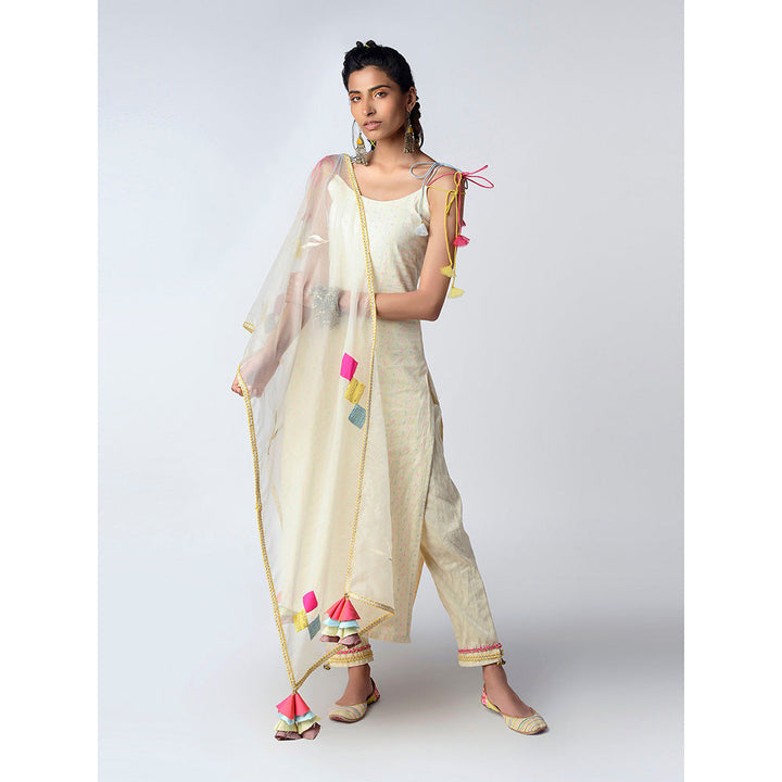 Rishi & Vibhuti Ivory Spicy Tangles Kurta With Pant & Dupatta (Set of 3)