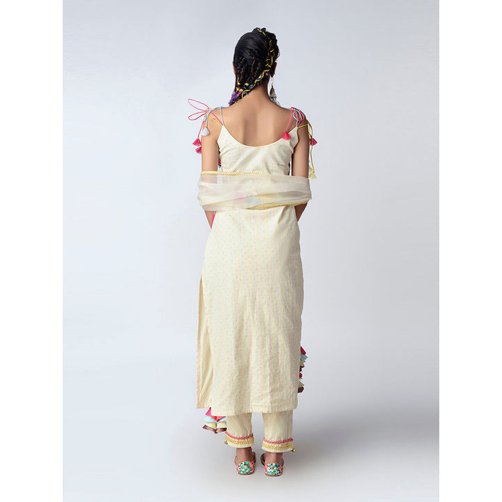 Ivory Spicy Tangles Kurta With Pant & Dupatta (Set of 3)