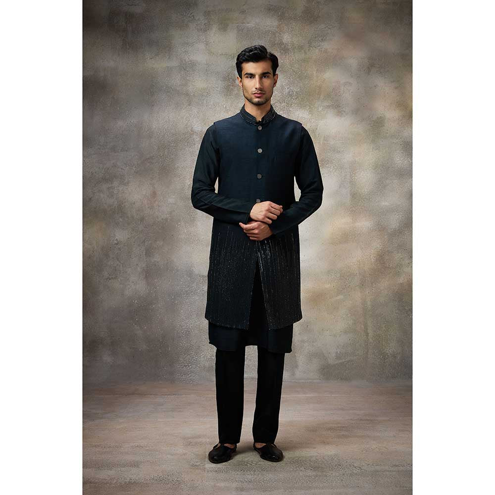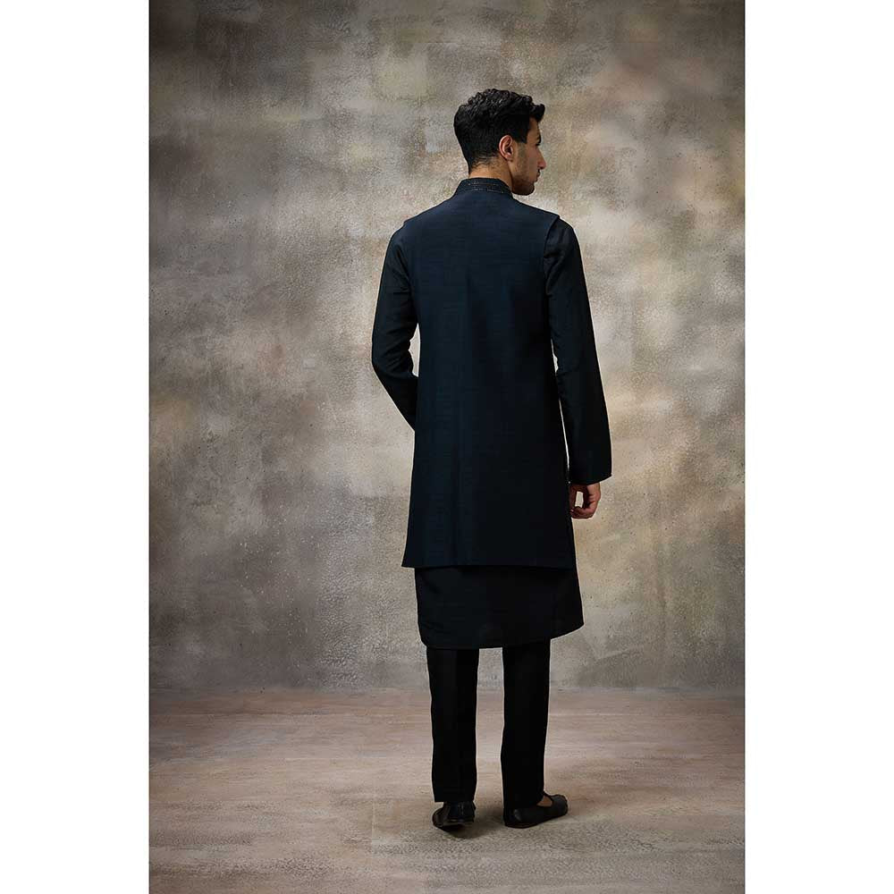 Navy Blue Embellished Kurta with Pant and Nehru Jacket (Set of 3)