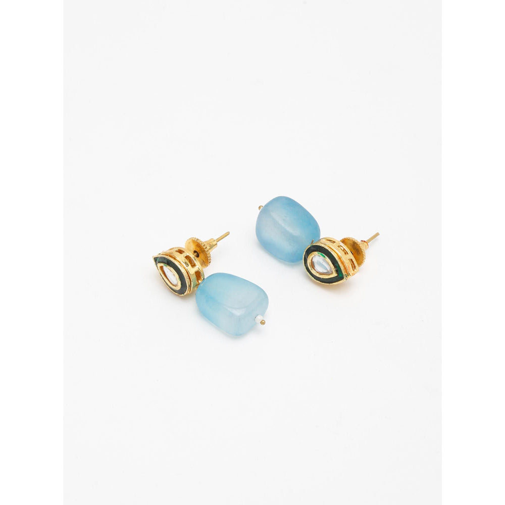 RUBY RAANG STUDIO Gold-Toned Blue Beaded Kundan Studded Contemporary Drop Earrings
