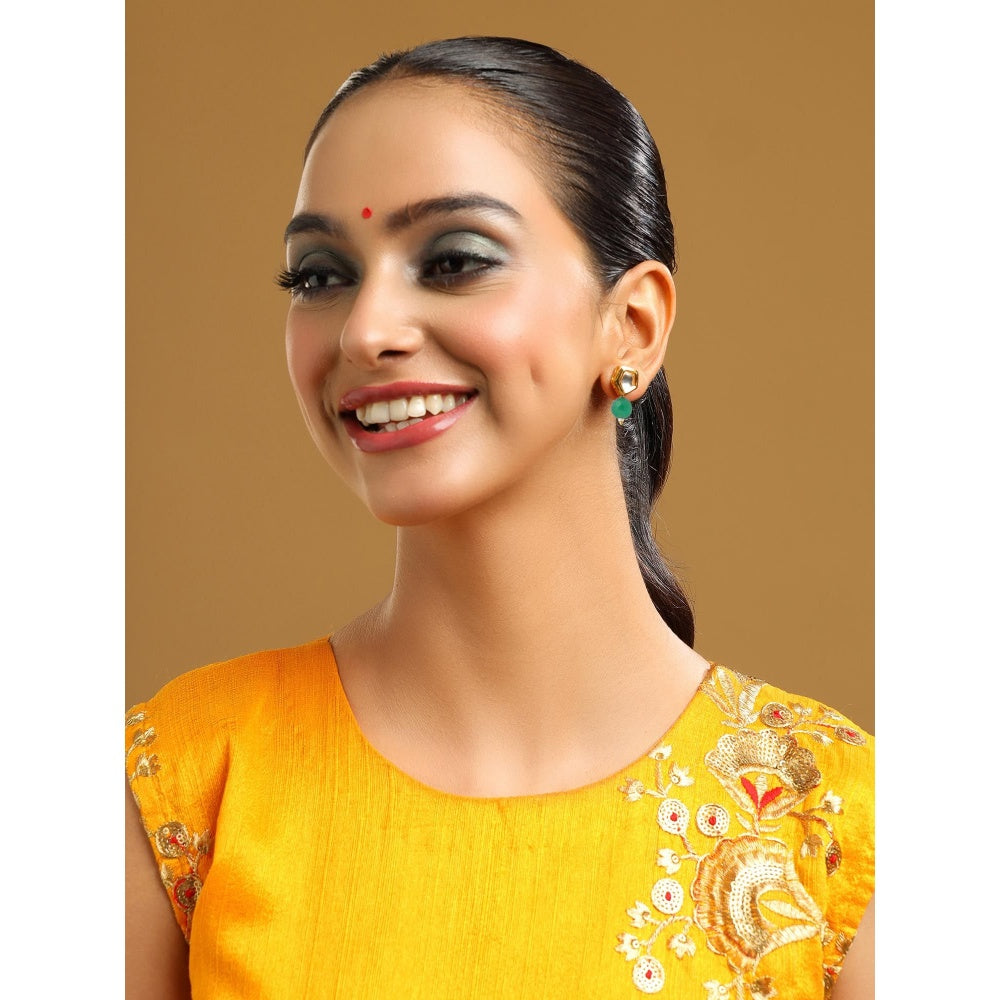 Ruby Raang Studio Green Brass Gold Plated Kundan Pair Of Earrings