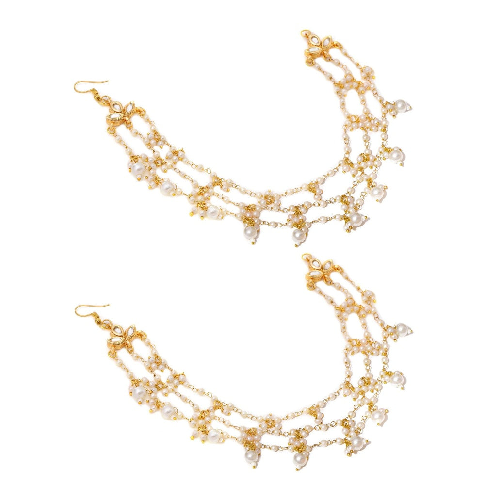 Ruby Raang Studio White Brass Gold Plated Pearl Pair Of Ear Chain