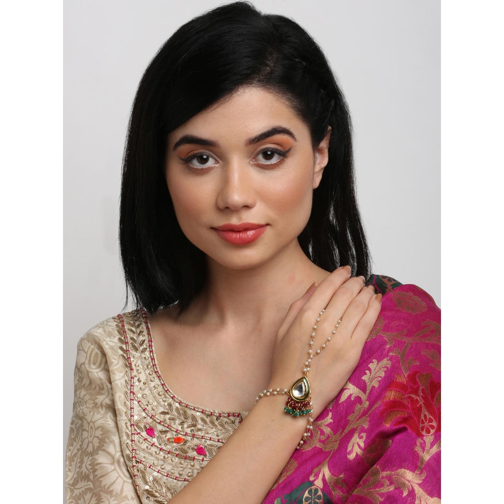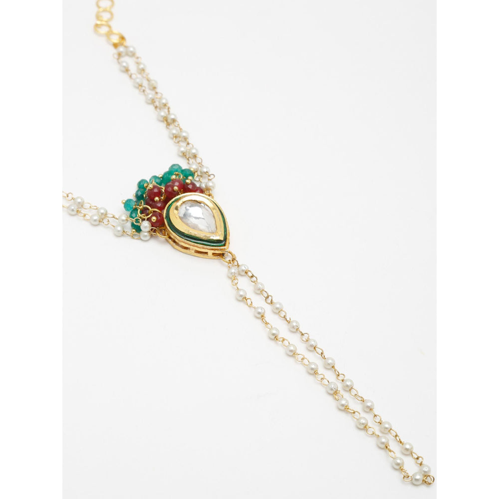 Description : Can never go wrong with this beautiful Multi Colored Kundan & Pearl Haathphool, Ruby Raang pieces are carefully handcrafted in Delhi, each piece is glorious and articulate, add a touch of glam to any outfit and look your very best with our versatile pieces fit for all ages and all occasions. All our pieces are handmade using hypoallergenic material.