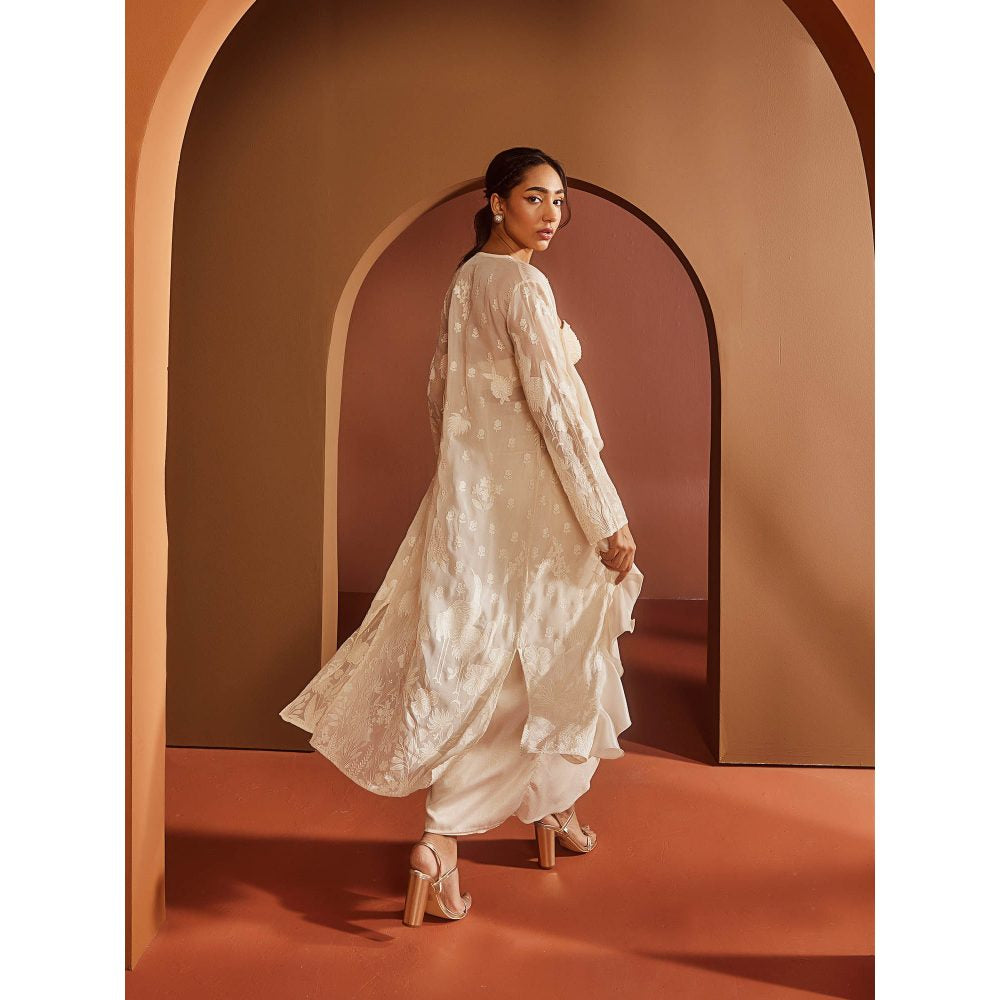 Saanjh by Lea Aashvi Ivory Shimmer Embroidered Fusion (Set of 3)