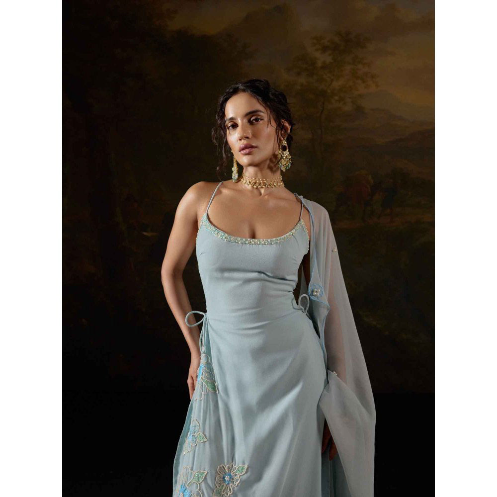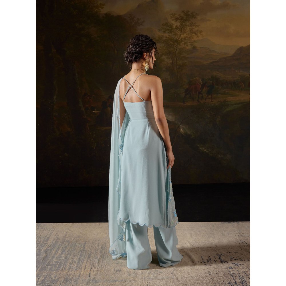 Saanjh by Lea Raaya Blue Embroidered Kurta with Palazzo and Dupatta (Set of 3)