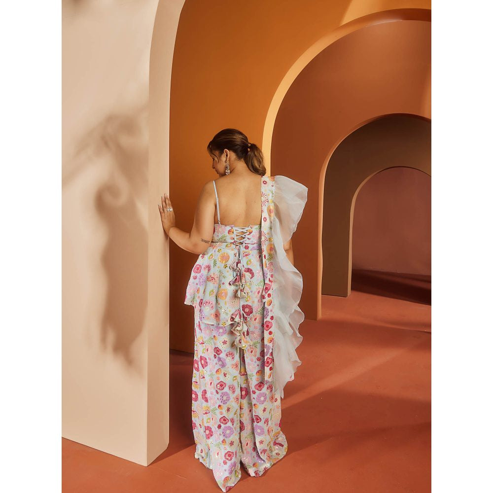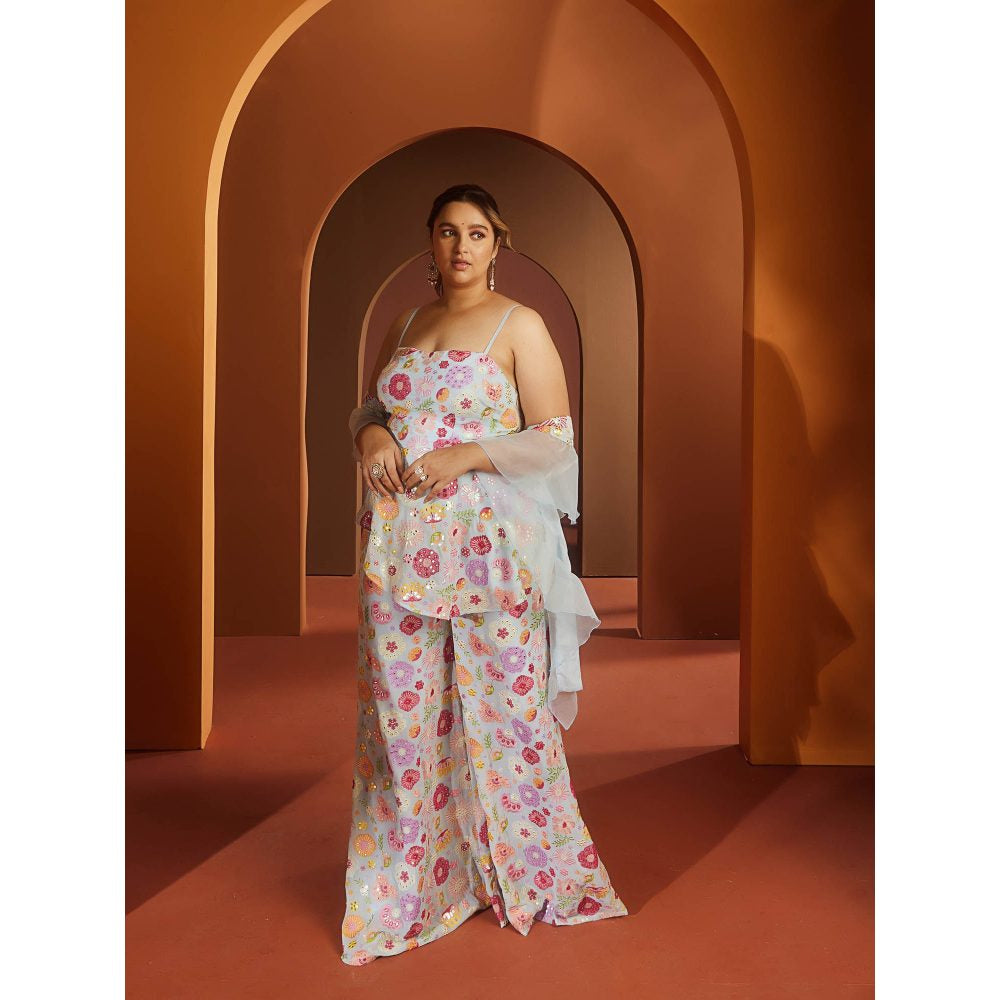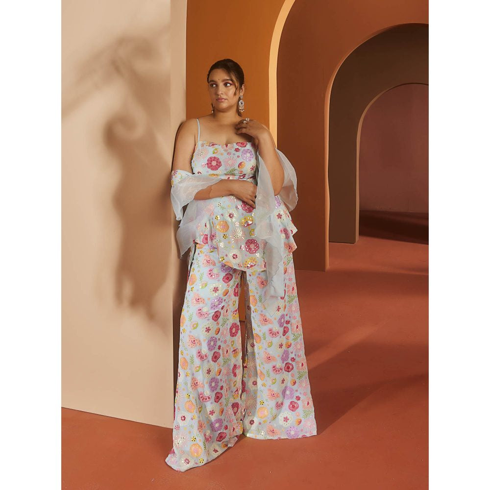 Shyla Baby Blue Embroidered Sharara (Set of 3)