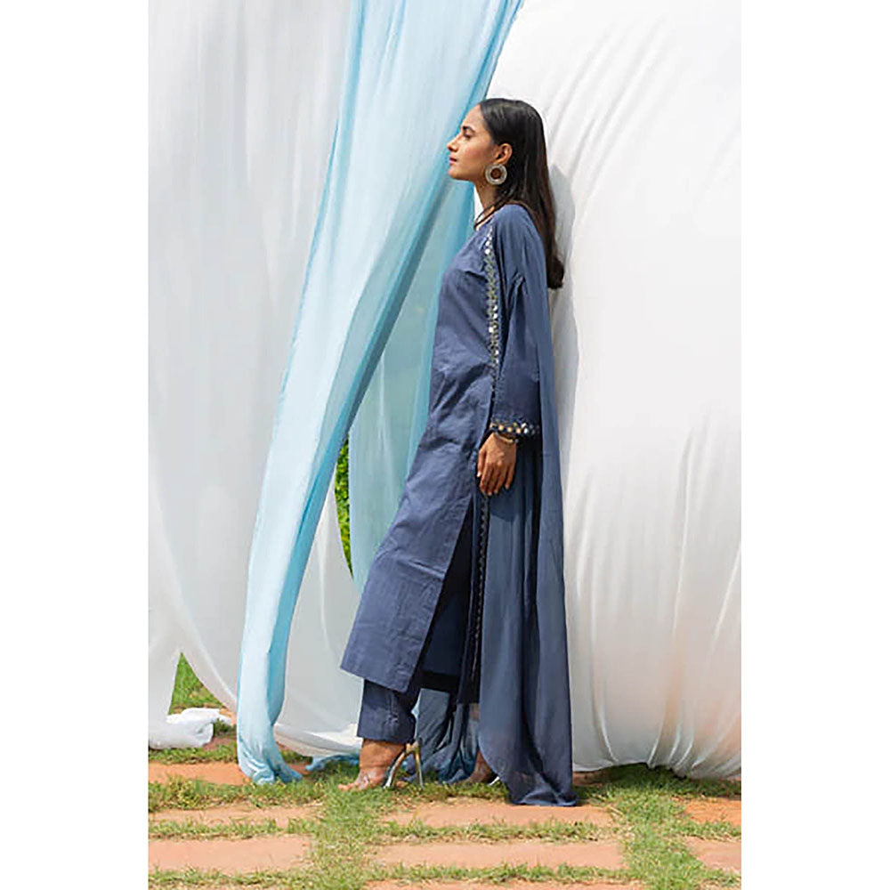 Saatvikei Cape Suit - Dark Grey Kurta with Pant and Cape Dupatta (Set of 3)