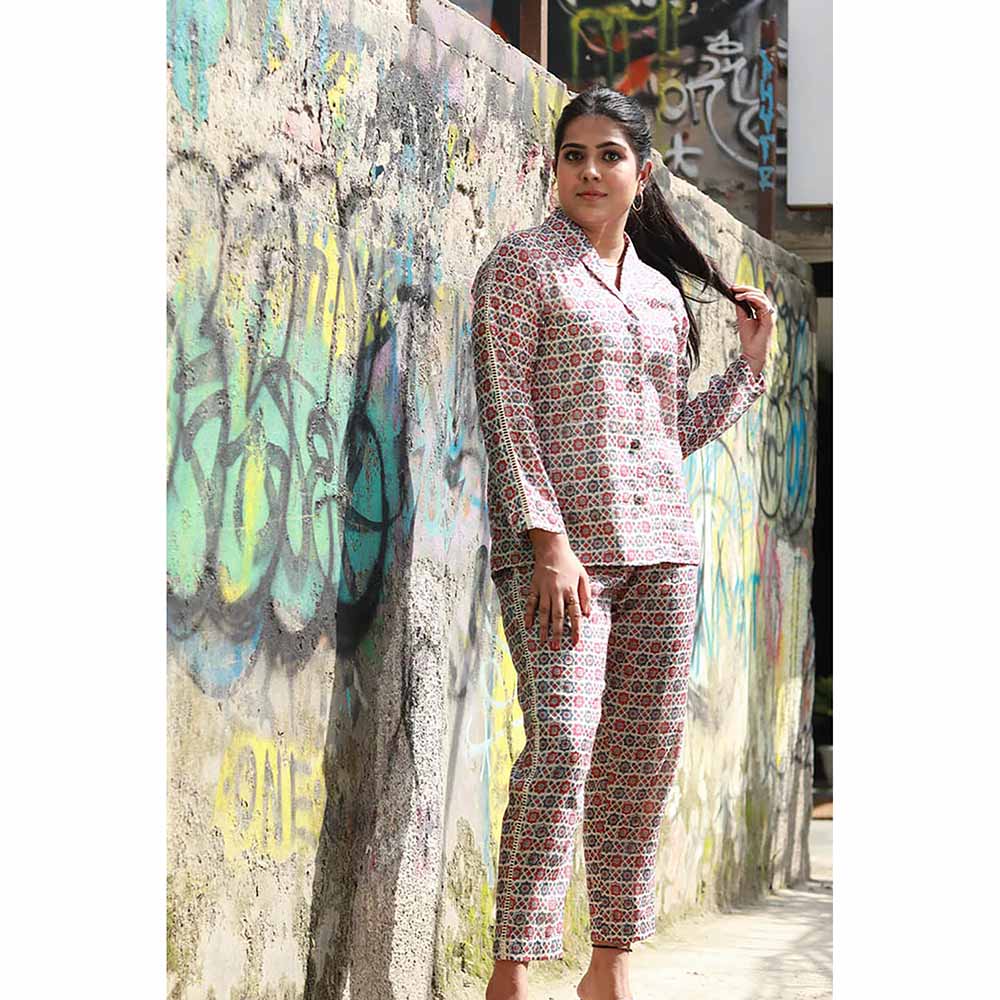 Saral - Printed Co-Ord - Red & Blue (Set of 2)