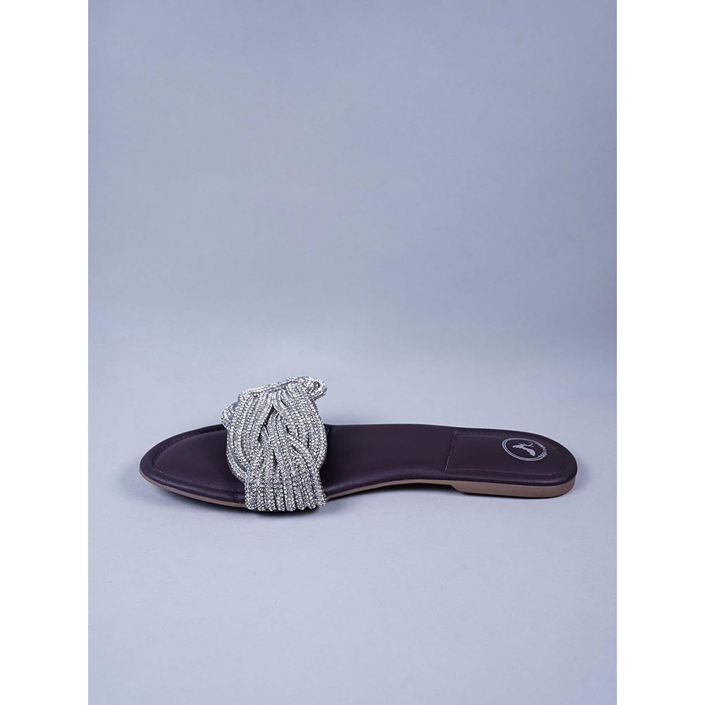 Description : Elevate your style with Sana K's exquisite Brown Braid Flats. These stunning shoes feature rhinestone-adorned shoelaces and a silver braided bow, adding a touch of elegance to any outfit. Ideal for casual days, parties, and a perfect complement to both Indian and Western attire. Step into sophistication today!