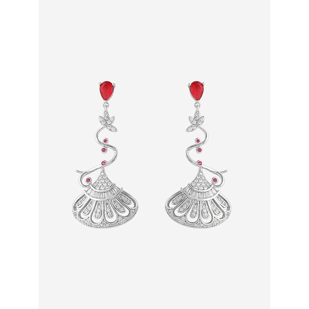 Shaze Silver Rhodium-Plated American Diamond Red Pot Drop & Dangle Earrings For Women