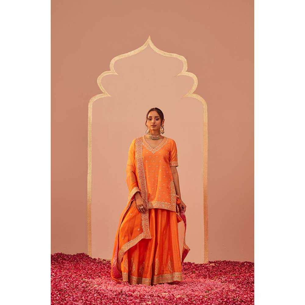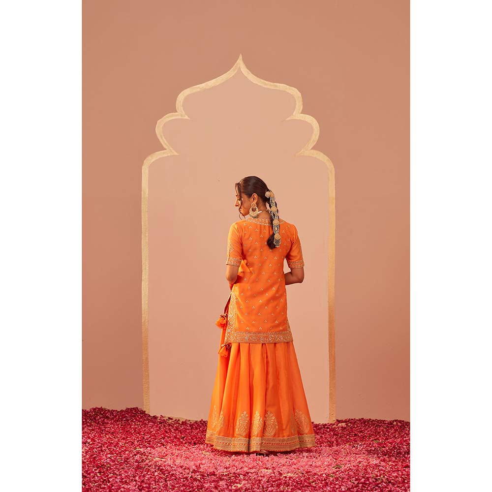 Sheetal Batra Orange Faiza Kurta With Lehenga And Dupatta (Set of 3)
