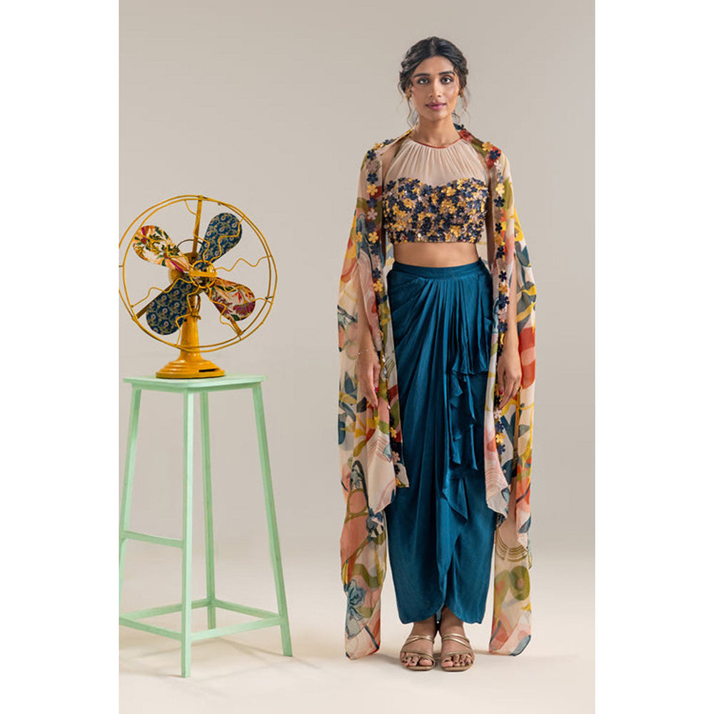 Soup by Sougat Paul Blue Crop Top Skirt with Cape