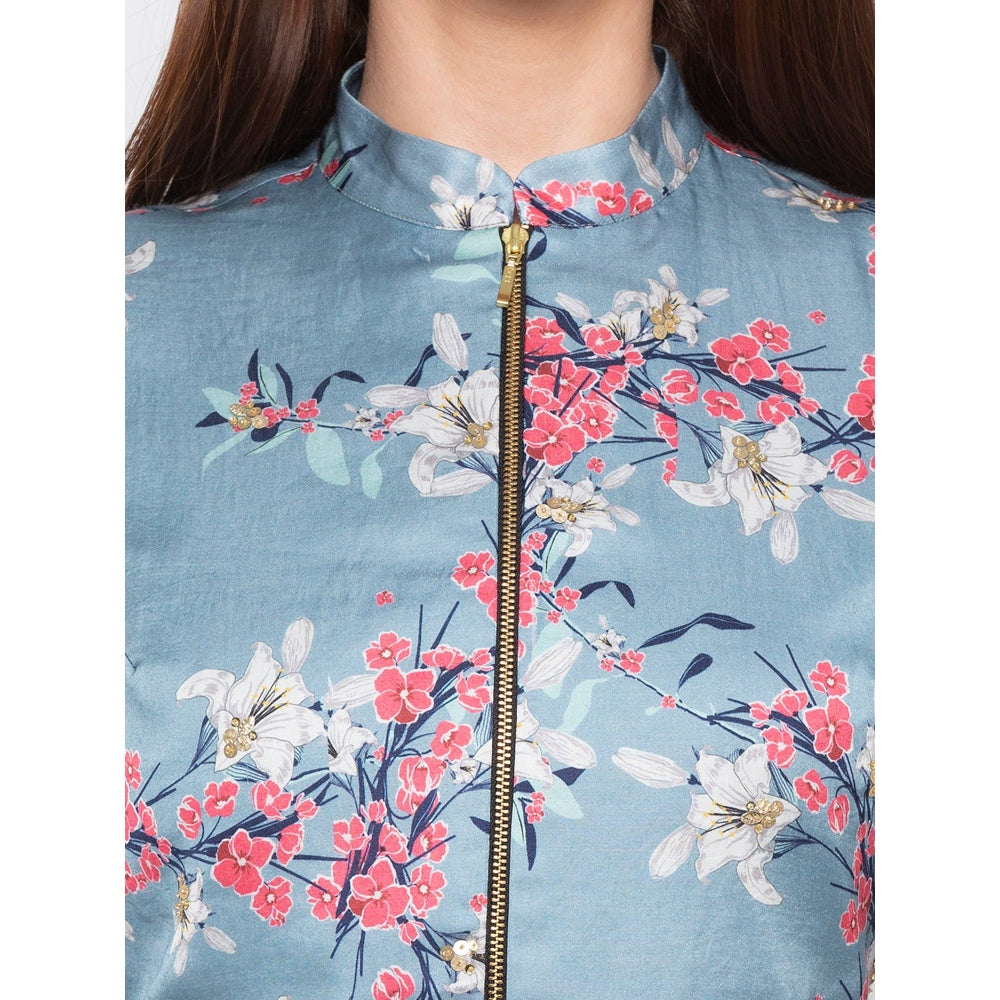 Blue Striped Drape Dress With Jacket (Set of 2)