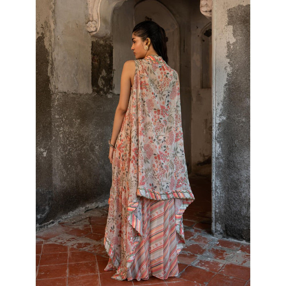 A Floral Print Hand Embroidered Cape with Bustier and Pant (Set of 3)