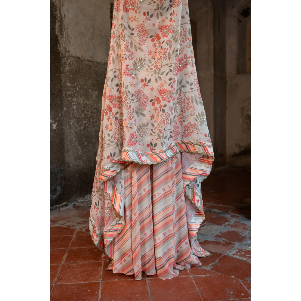 Sshilpa Samriya A Floral Print Hand Embroidered Cape with Bustier and Pant (Set of 3)